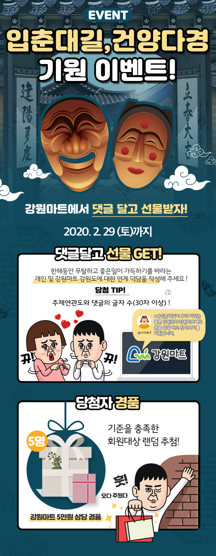 2020년에는 우리가 바라는 일들이 이루어지기를, 강원마트도 더 많은 사람들의 마음과 함께 할 수 있기를 기대합니다.