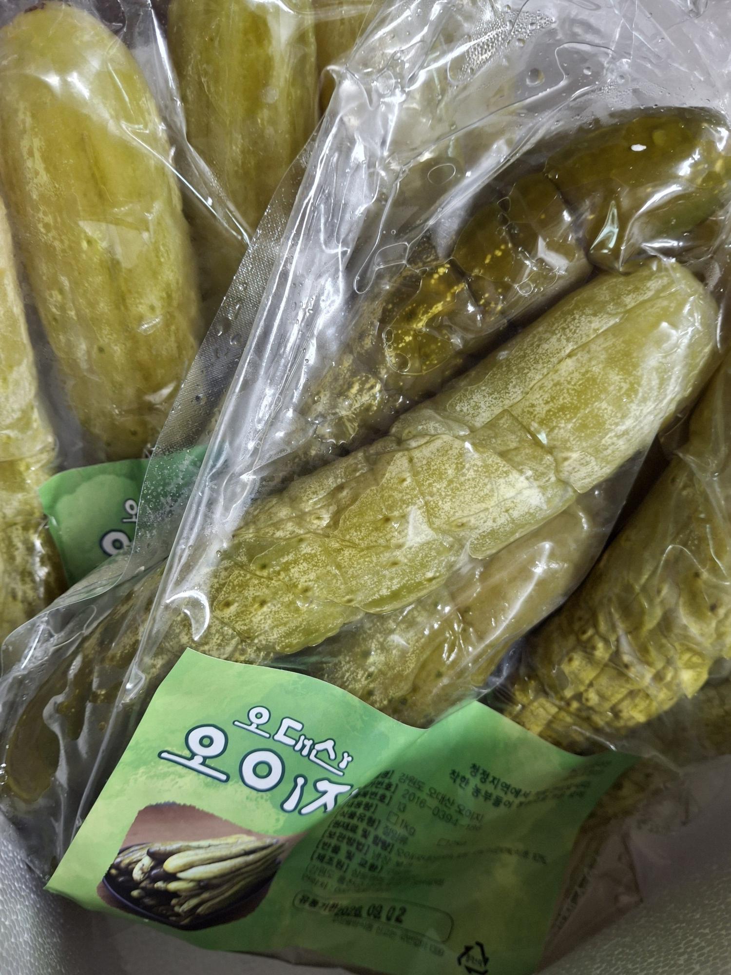 물에 담구어 꼭짜서 양념에 골고루 버무리면 맞있는 오이지입니다