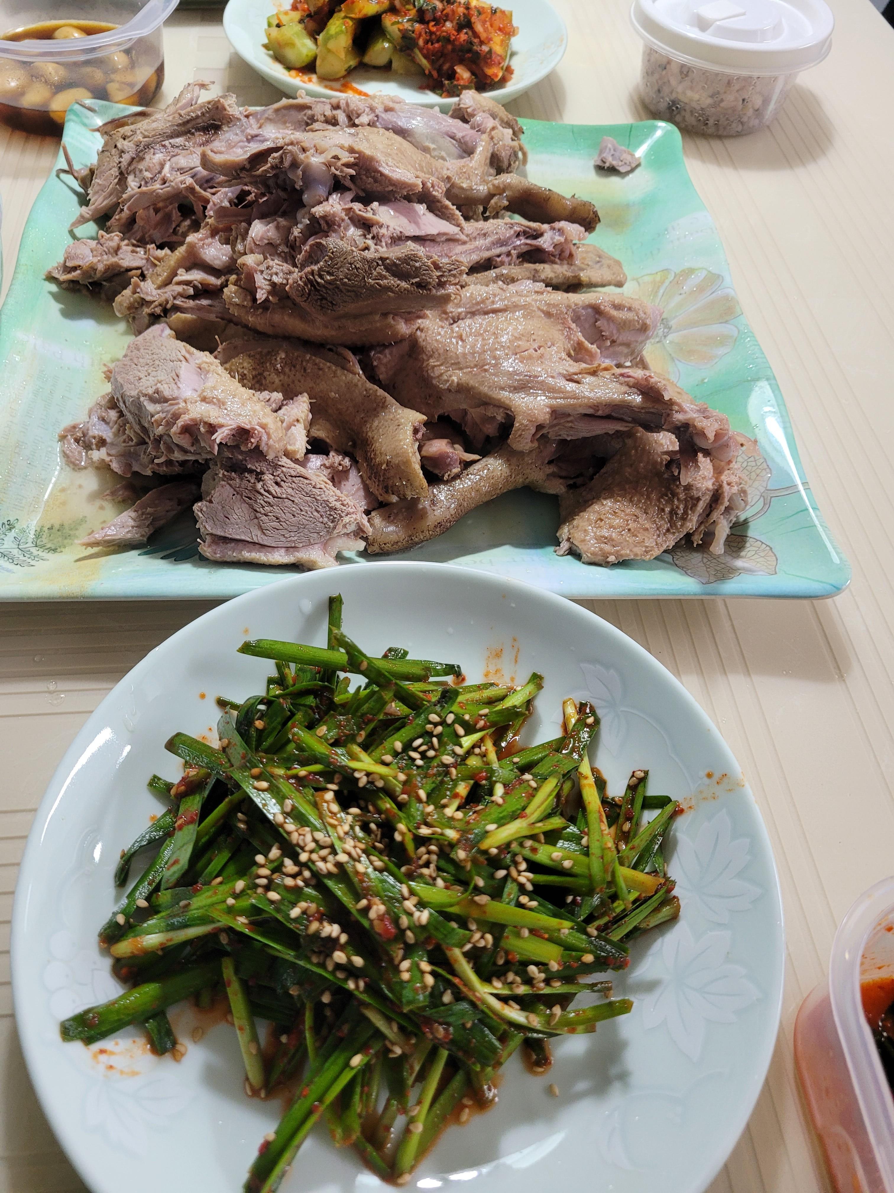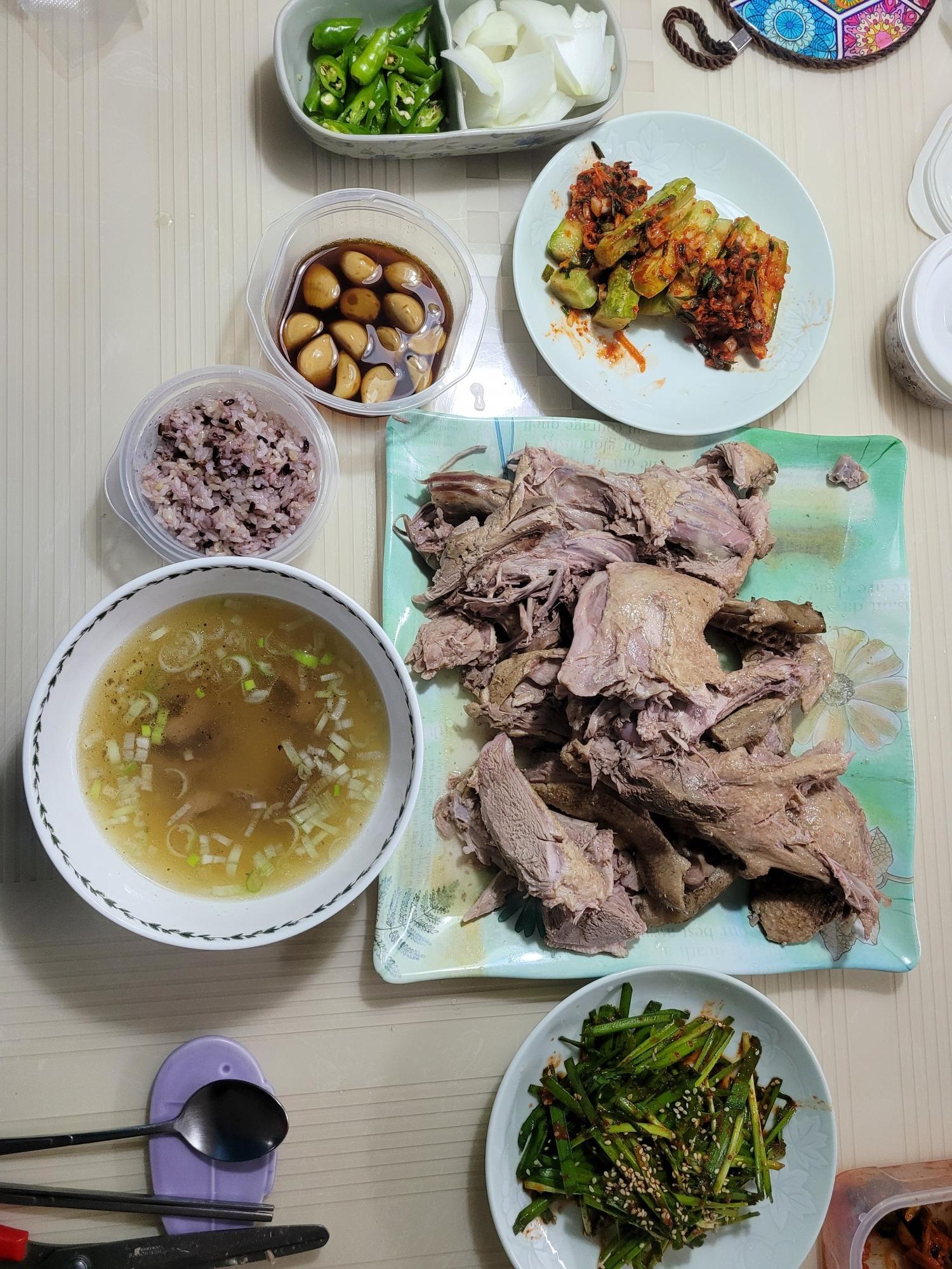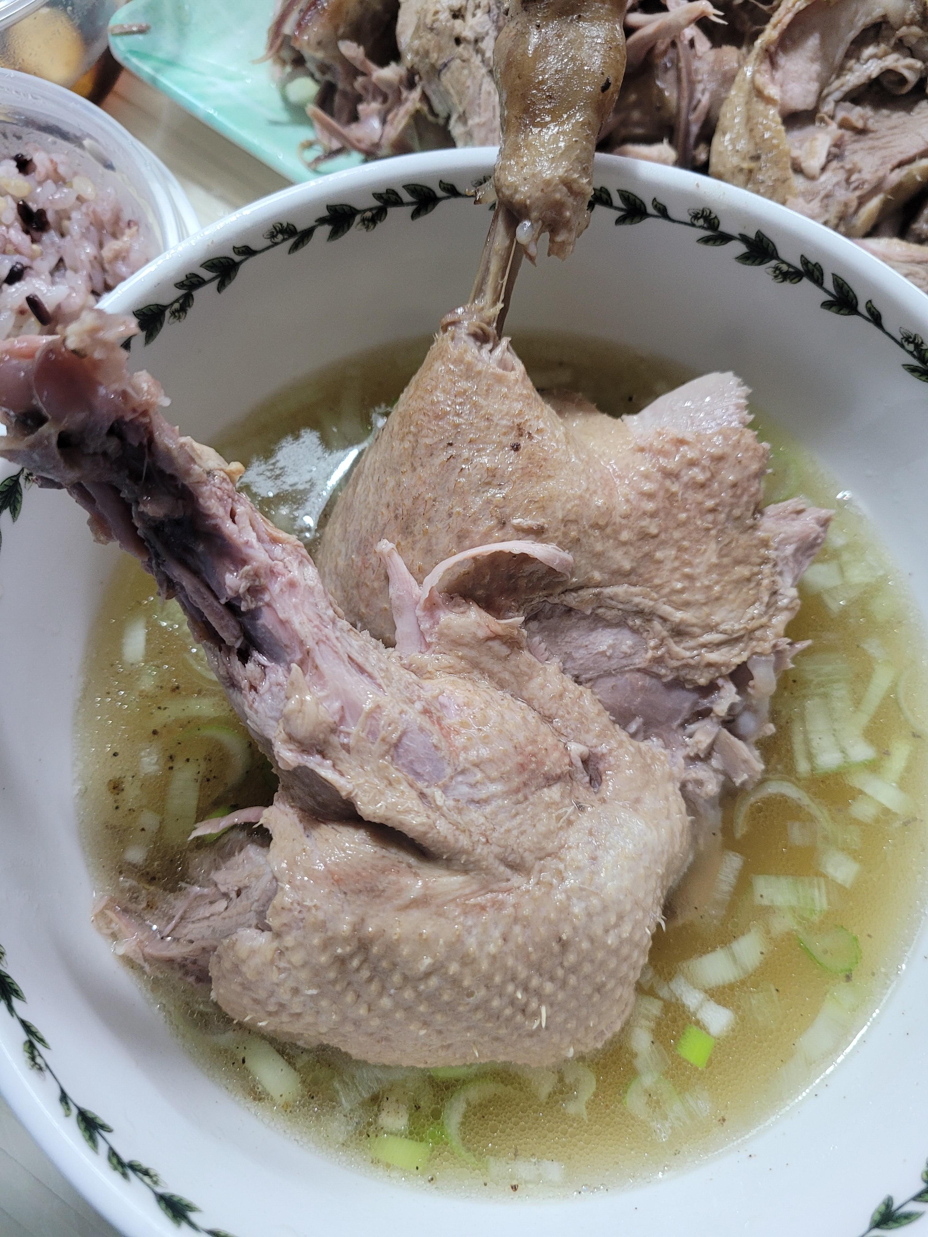 가족들과 두마리 삶아서 뜯어먹고 국물에 밥과 말아먹고 든든하게 포만감 느끼게 먹었네요..