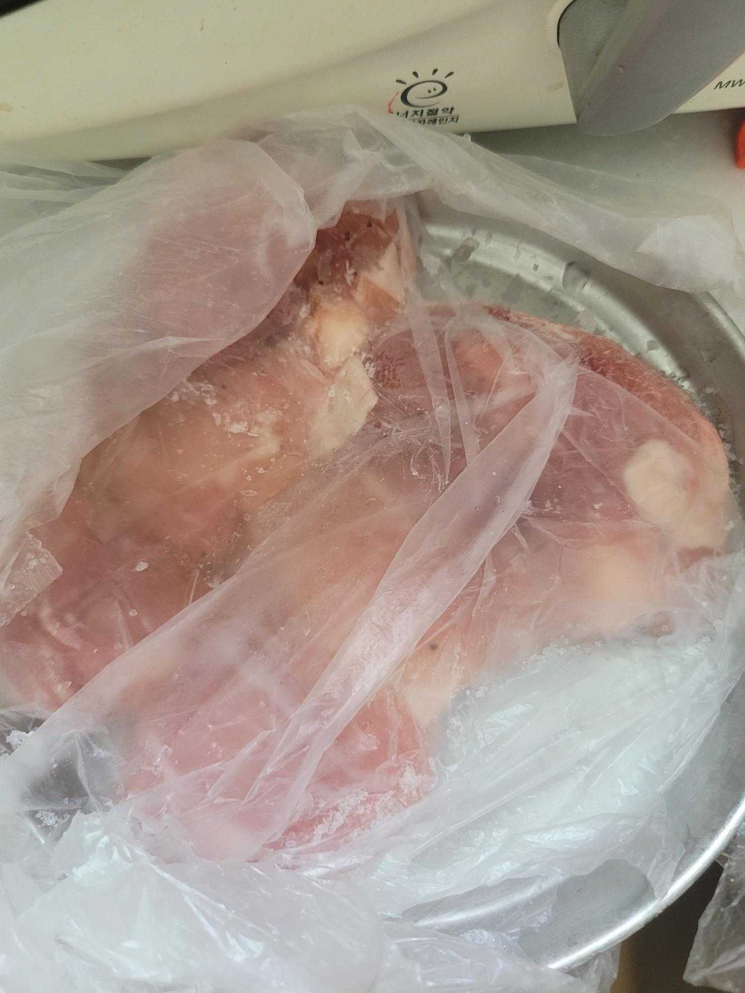 통오리 백숙용 2kg 오리고기 백숙을 주문해서 약 2시간 가량 푹 삶았습니다..