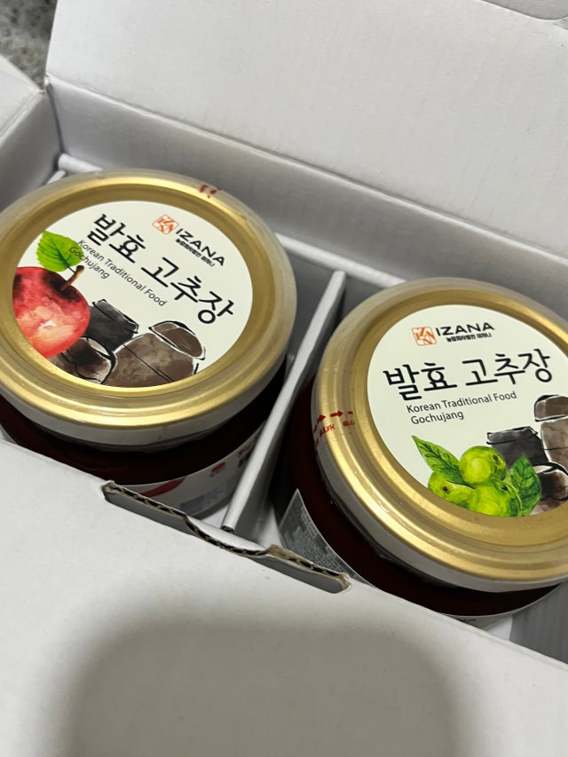 이자나 발효고추장 세트(사과, 매실)를 구매해서 먹어봤습니다. 먼저 패키지부터 고급스럽고 정성이 느껴져 선물용으로도 손색이 없더라고요. 고추장을 맛봤을 때, 일반 고추장과는 다른 발효된 깊은 맛이 확 느껴졌습니다.