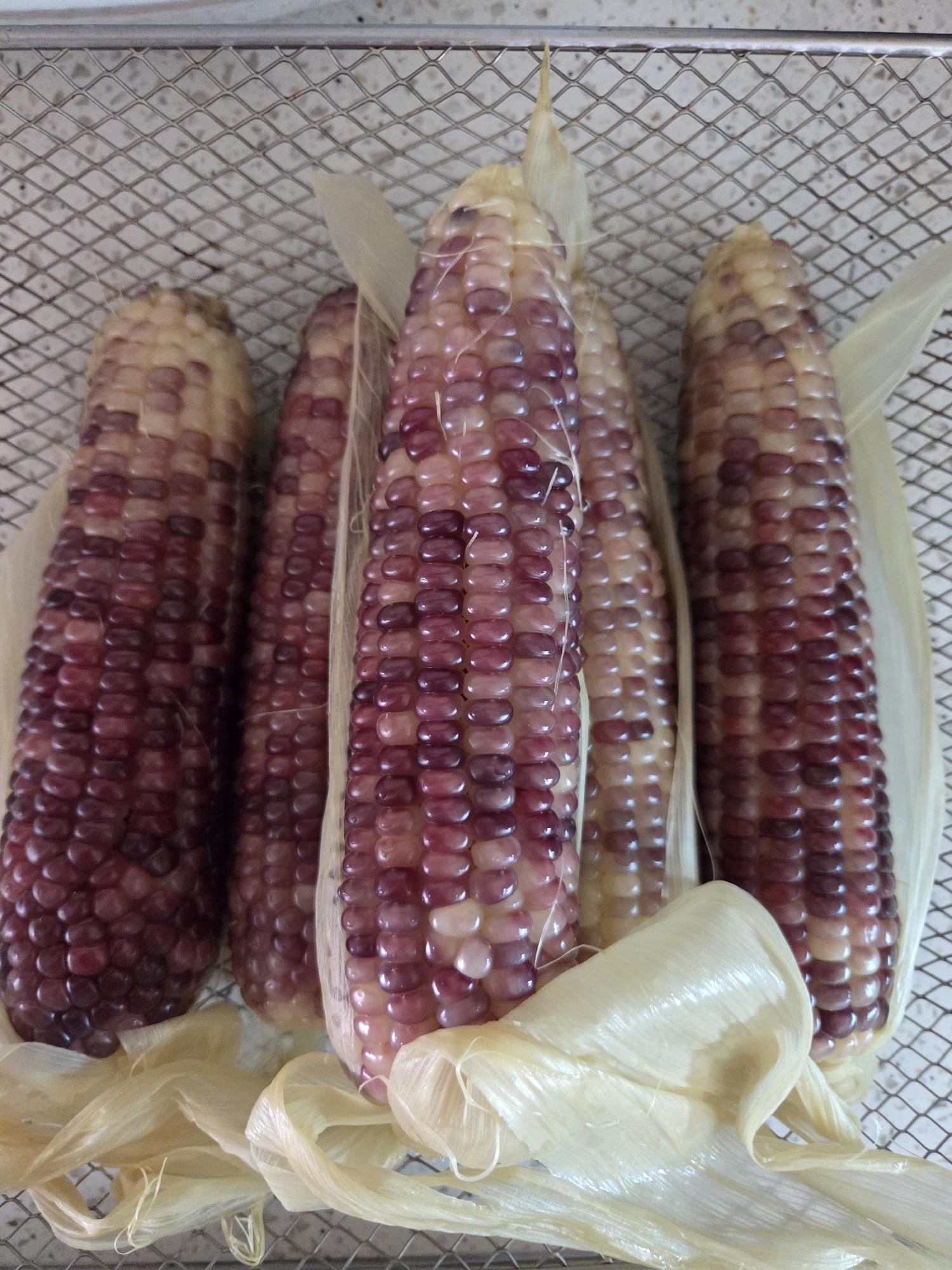 오늘 받아서 바로 쪘어요. 옥수수가 부드럽고 달고 맛있어요. 덜 여문 옥수수가 많은 편이예요. 살짝 보라색이 나기 시작하는 것이 많아요. 좀 더 여문 후에 보내 주시면 더 좋을 듯해요. 덜 여물어 부드럽고 더 단맛이 나는 점도 있긴해요.