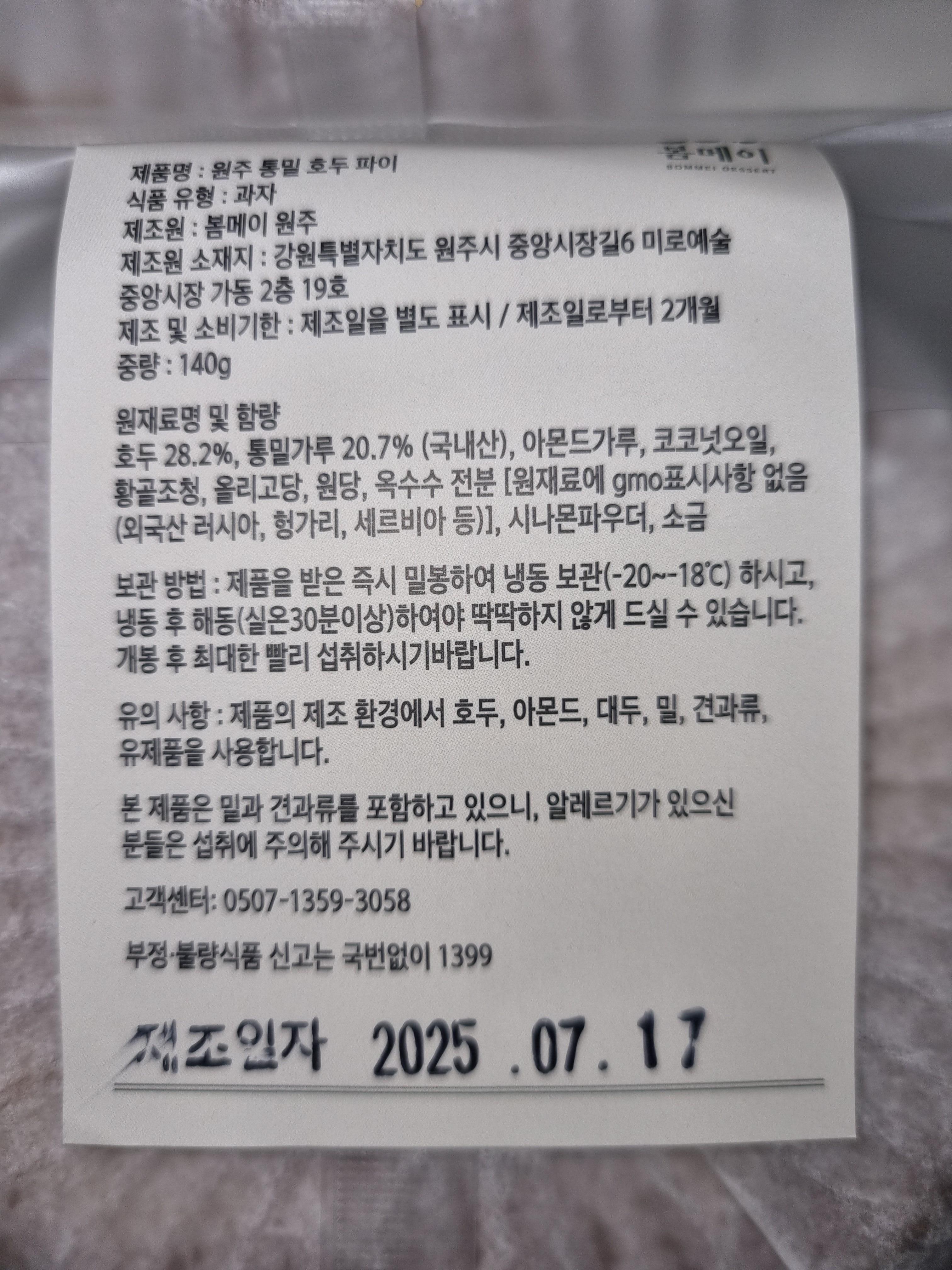 원주 통밀 호두 파이 정말정말 맛있어 요