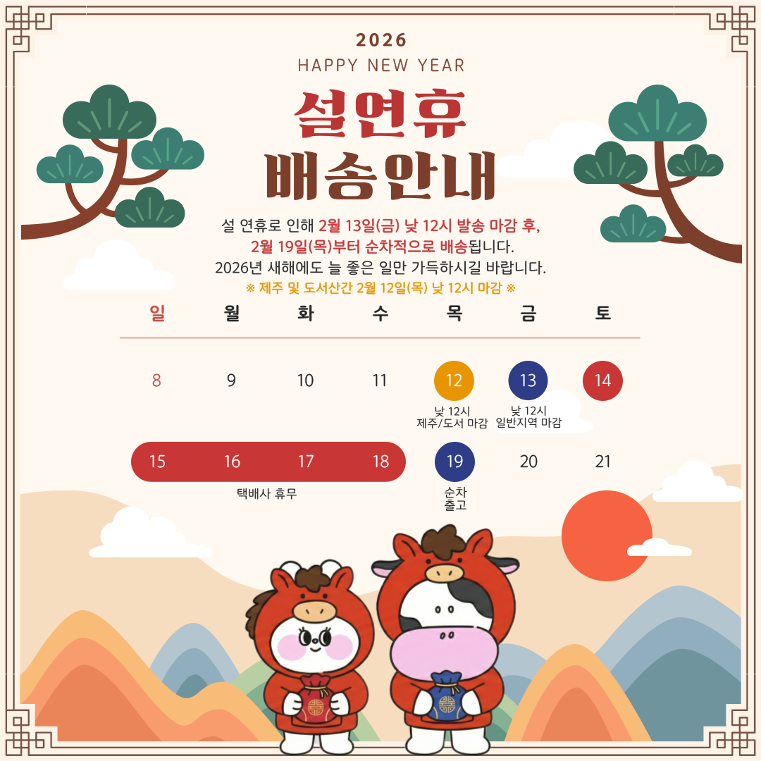 2. 해외구매 특성상 주문에서 배송까지는 평균 10~15일이 소요됩니다. 간혹 현지 제품 수급에 따라 부득이하게 시일이 더 소요 될 수 있으니 구매시 좀 더 여유있게 주문하시길 권합니다.