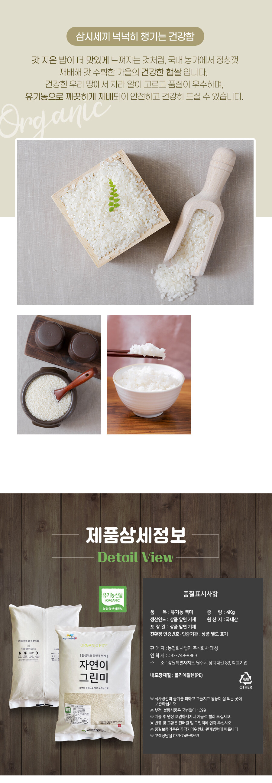 유기농 백미 2025년 생산된 햅쌀 입니다.