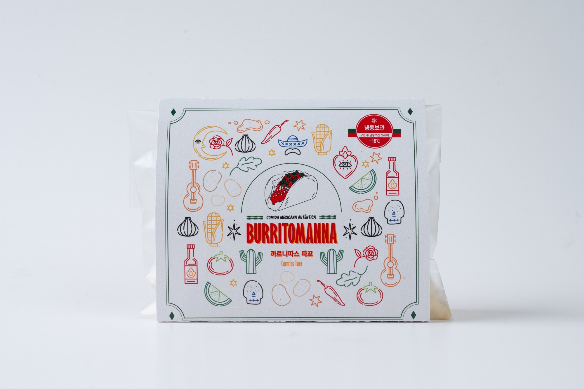 부드럽고 담백한 돼지고기와 강원도 옥수수가 만난 타코입니다. 시그니처 살사 소스와 고수로 현지 타코의 맛을 한껏 살렸고, 부드러운 치즈도 함께 들어있어 진한 풍미도 함께 느껴지죠. 재료의 밸런스를 조화롭게 만들어 타코가 처음이더라도 맛있게 즐길 수 있답니다. - 용량 : 1봉 당 150g - 원재료(원산지) 및 함량 : 빵류[또르띠야전용밀(밀:호주, 미국, 캐나다)], 까르니따스[(돼지고기 후지(국산)], 옥수수 스프레드[옥수수, 동물성 휘핑크림(네덜란드)], 자연치즈 [외국산(독일, 미국, 벨기에, 리투아니아):원유, 식염, 유산균배양액, 우유응고효소, 염화칼슘], 토리코스타(산화전분), 살사[토마토, 토마토 주스(이탈리아)], 양파, 고수 - 소비기한 : 별도 표기일까지