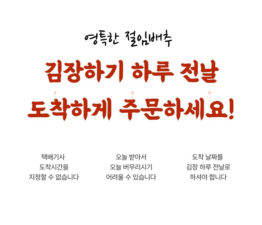 * 김장을 오전에 하시려면 김장일 전날 미리 받아두시면 편리합니다.