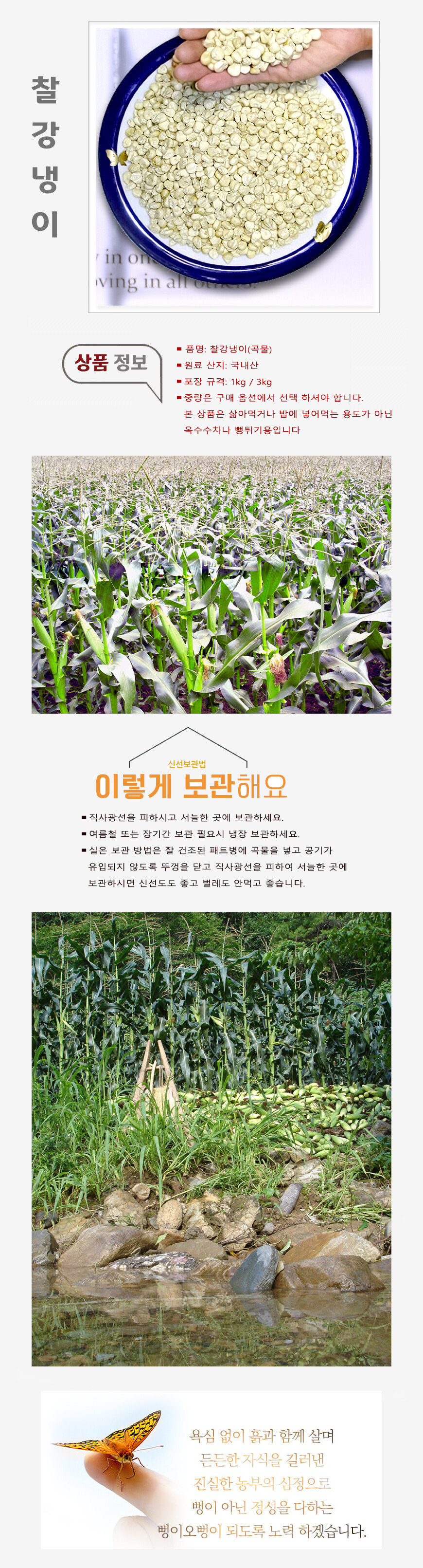 본 상품은 삶어먹거나 밥에 넣어 먹는 옥수수가 아니라 옥수수차나 뻥튀기용으로 사용할수 있습니다.