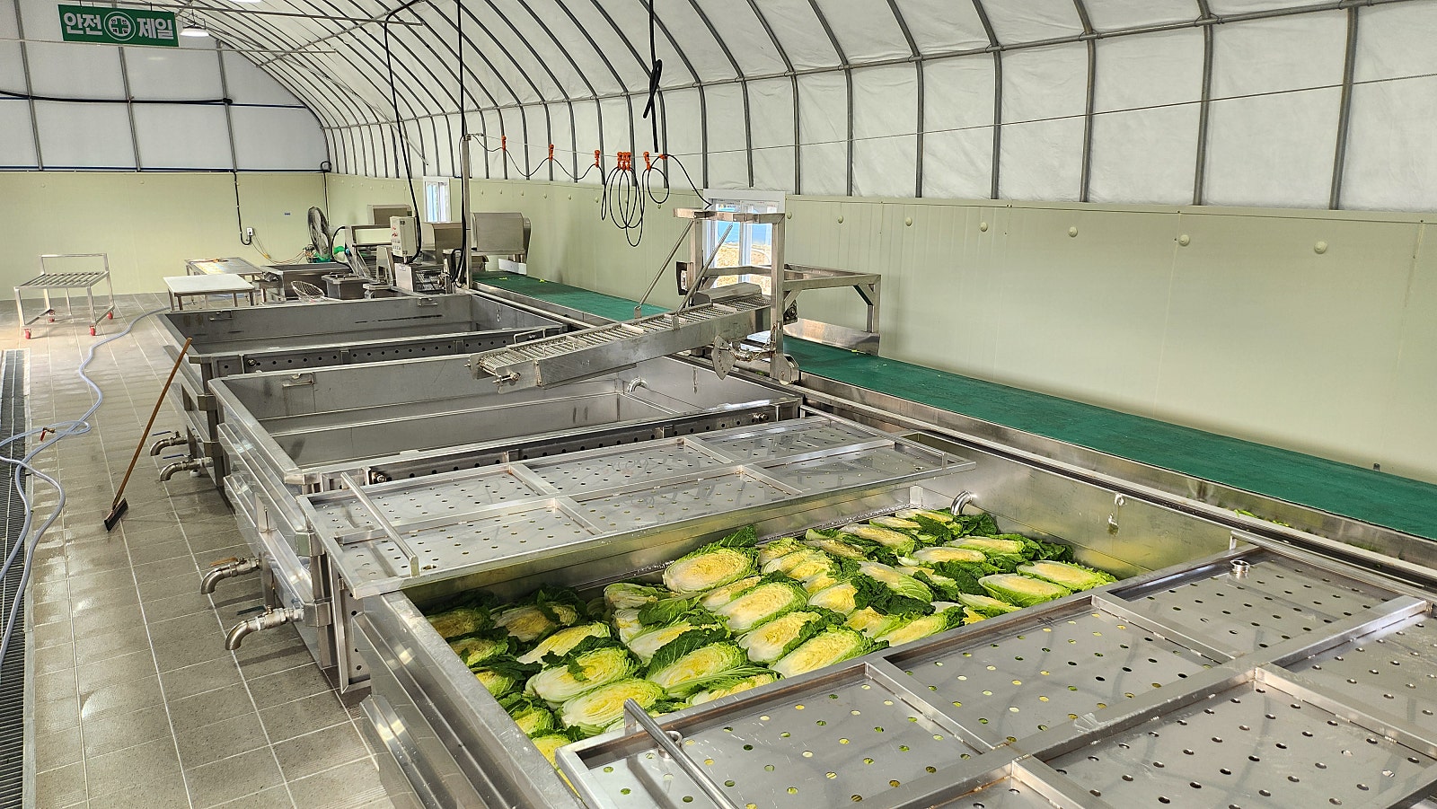 작년까지만해도 집에서 가정식으로 절임배추를 생산해서 보내드렸는데 올해는 절임가공시설을 하여 위생적인 새로운 시설에서 생산하게 되었어요..