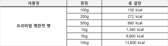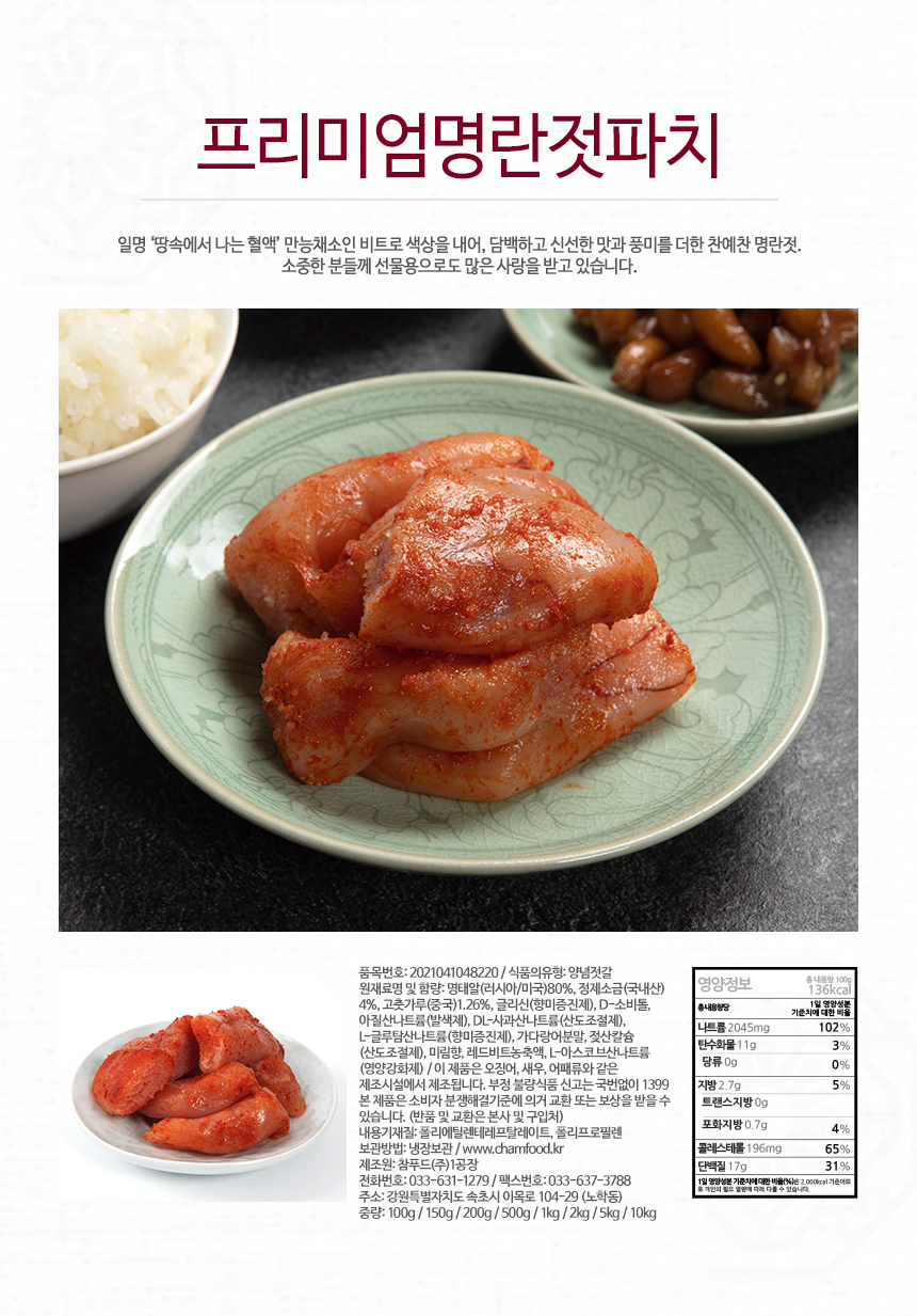 파치 제품은 햇알과 맛은 동일하나 모양이 살짝 터진 제품으로 알탕과 스파게티 등 요리에 활용하시기 좋은 제품입니다!