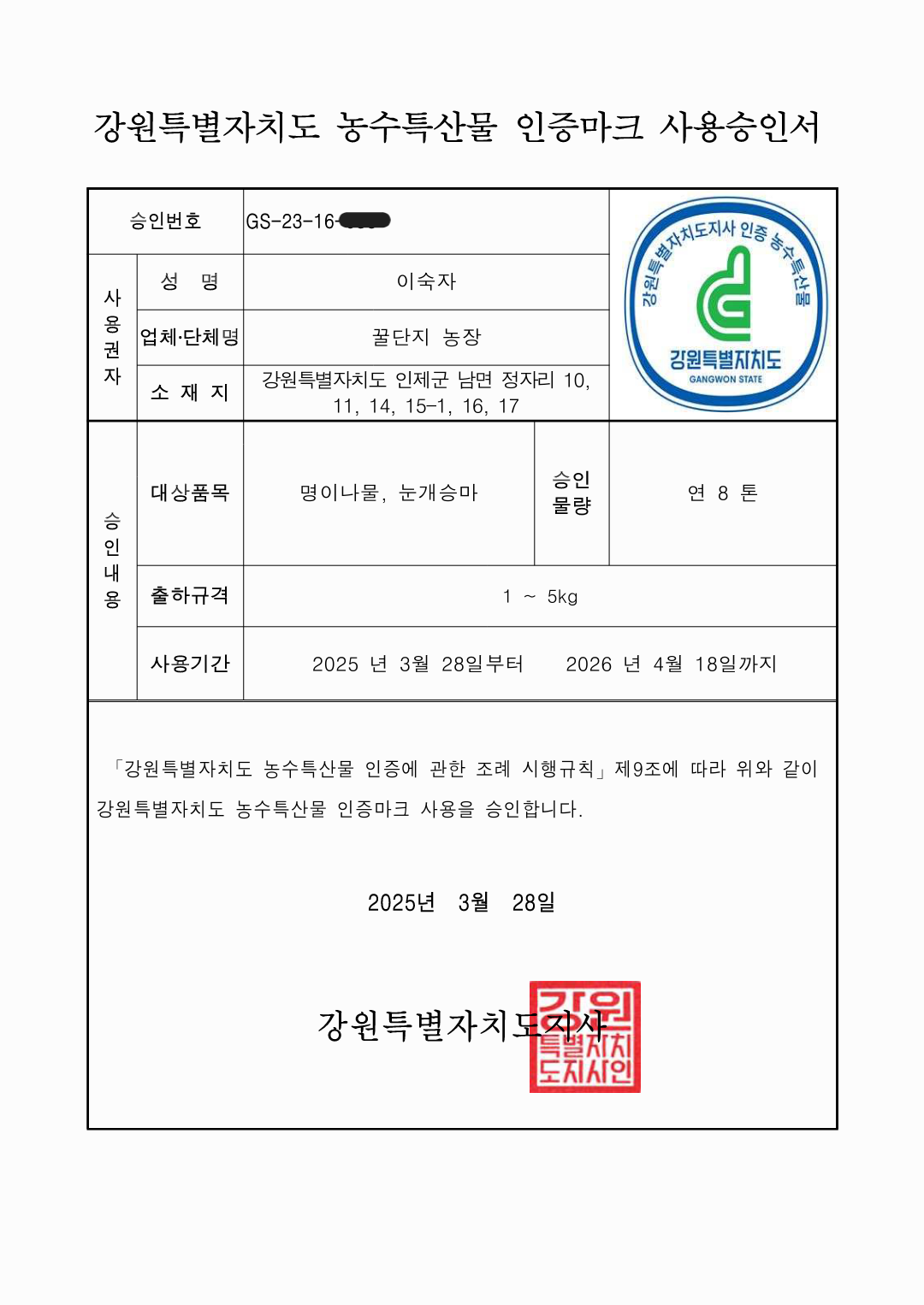 강원도지사 인증현항